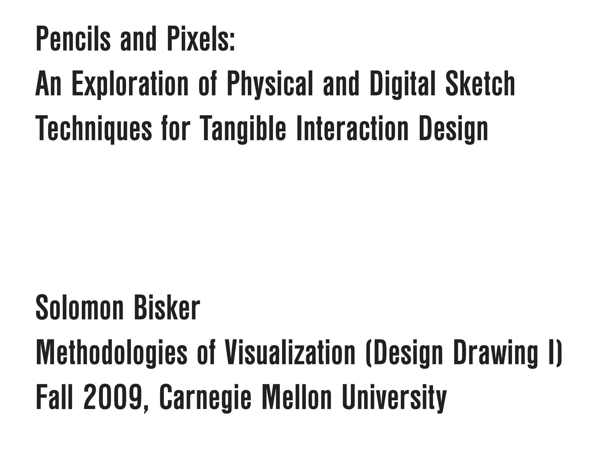 The document discusses a project by Solomon Bisker that explores hybrid sketching techniques combining physical and digital methods for tangible interaction design. The author hypothesizes that unique challenges in sketching tangible interactions necessitate this blend, particularly in mobile and body-positioning scenarios. Through a series of experiments and tips, the author illustrates how this hybrid approach can enhance the design process and improve the representation of human interactions with digital tools.
