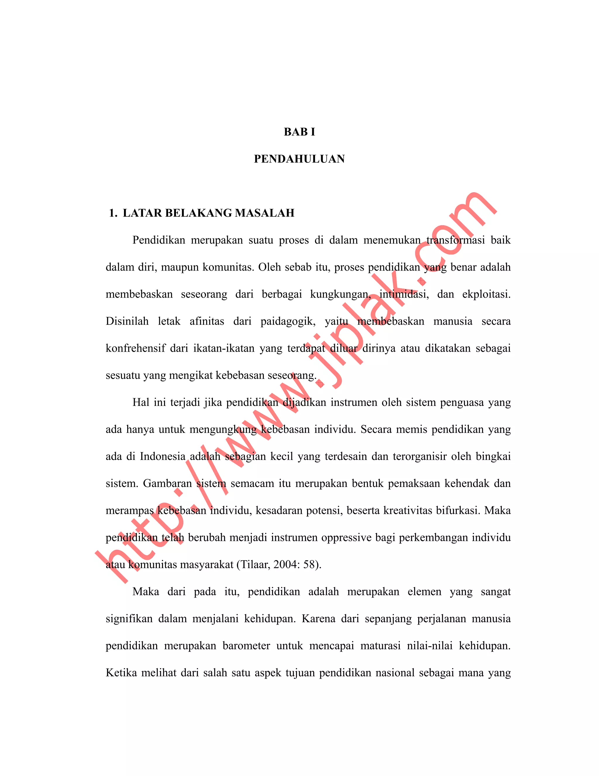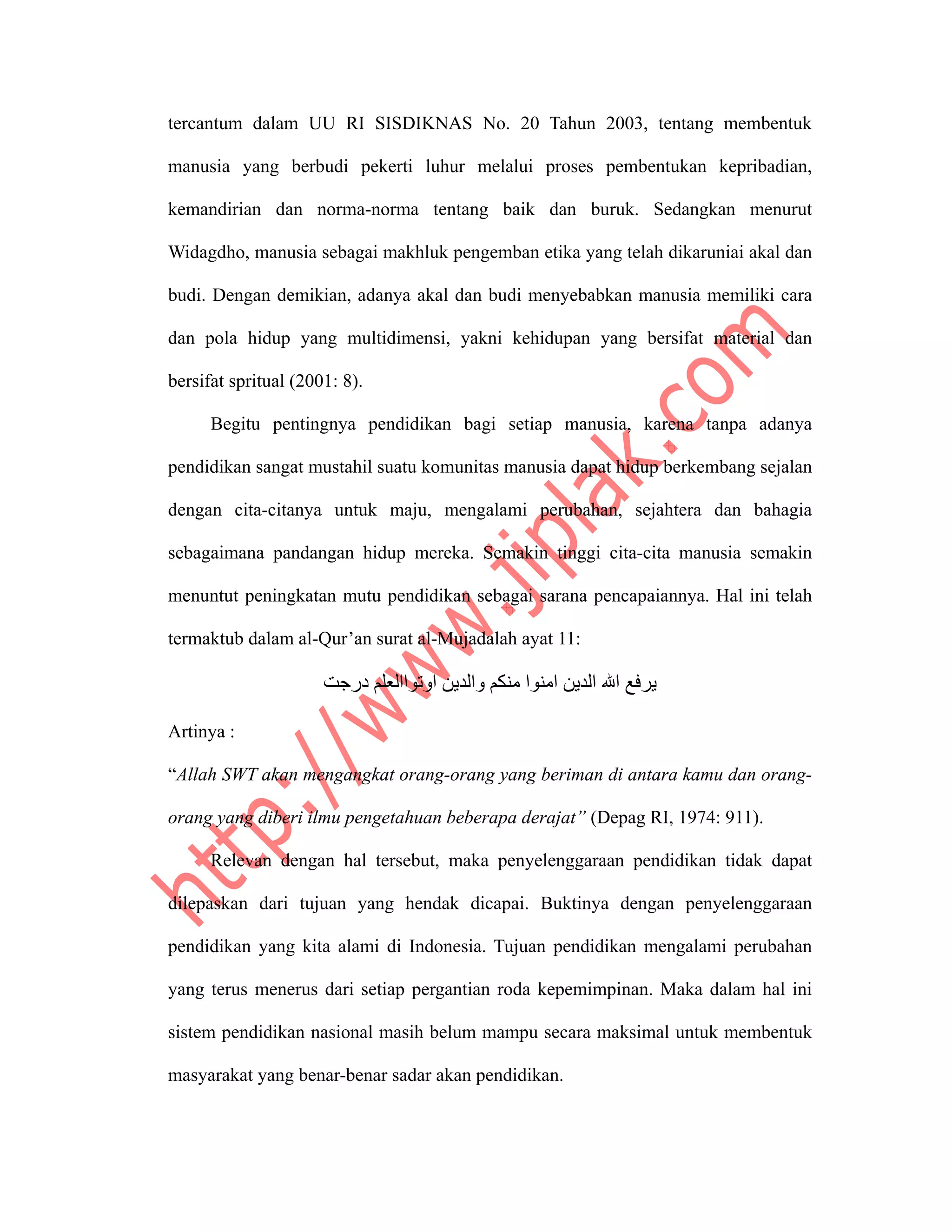 Dokumen tersebut membahas tentang latar belakang pentingnya pendidikan Islam di Indonesia, khususnya pendidikan Pondok Pesantren Tradisional. Tulisan menjelaskan bahwa pendidikan pesantren telah memberikan kontribusi besar dalam mencerdaskan kehidupan bangsa meskipun sempat dianggap sebagai lembaga kuno. Tulisan juga menyoroti pentingnya mempelajari pendidikan pesantren dalam perspektif pendidikan Islam Indonesia untuk memahami nilai-