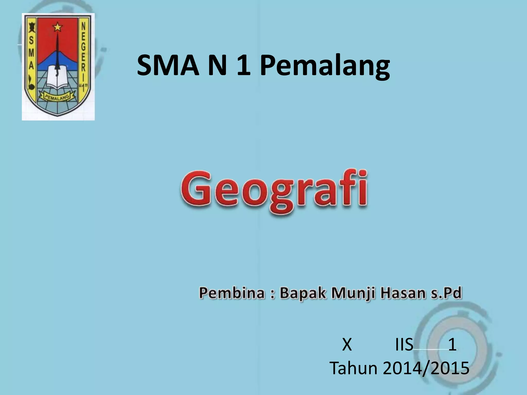 Dokumen tersebut membahas tentang pengertian dan macam-macam pendekatan geografi serta memberikan contoh-contohnya. Terdapat tiga pendekatan geografi utama yaitu pendekatan keruangan, lingkungan, dan wilayah yang masing-masing digunakan untuk menganalisis gejala berdasarkan lokasi, hubungan manusia dan lingkungan, serta karakteristik suatu wilayah.