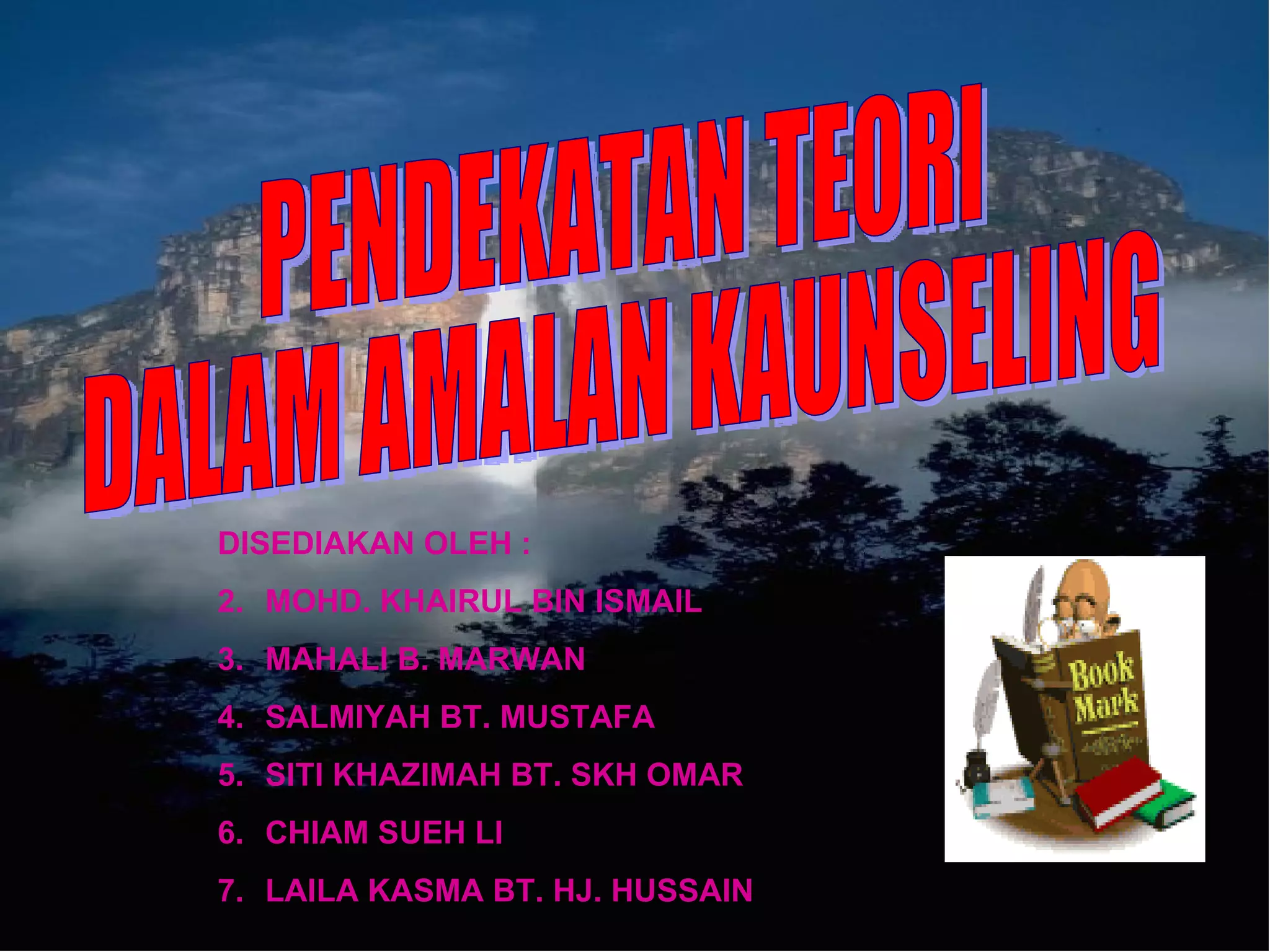 Dokumen tersebut memberikan ringkasan singkat tentang beberapa pendekatan teori dalam amalan kaunseling untuk kanak-kanak. Terdapat penjelasan mengenai teori psikoanalisis Freud dan Jung, pendekatan client-centered, serta teori RET. Dokumen ini juga menyentuh objektif kaunseling kanak-kanak, peranan kaunselor, dan teknik-teknik terapi yang digunakan dalam pendekatan-pendekatan tersebut.