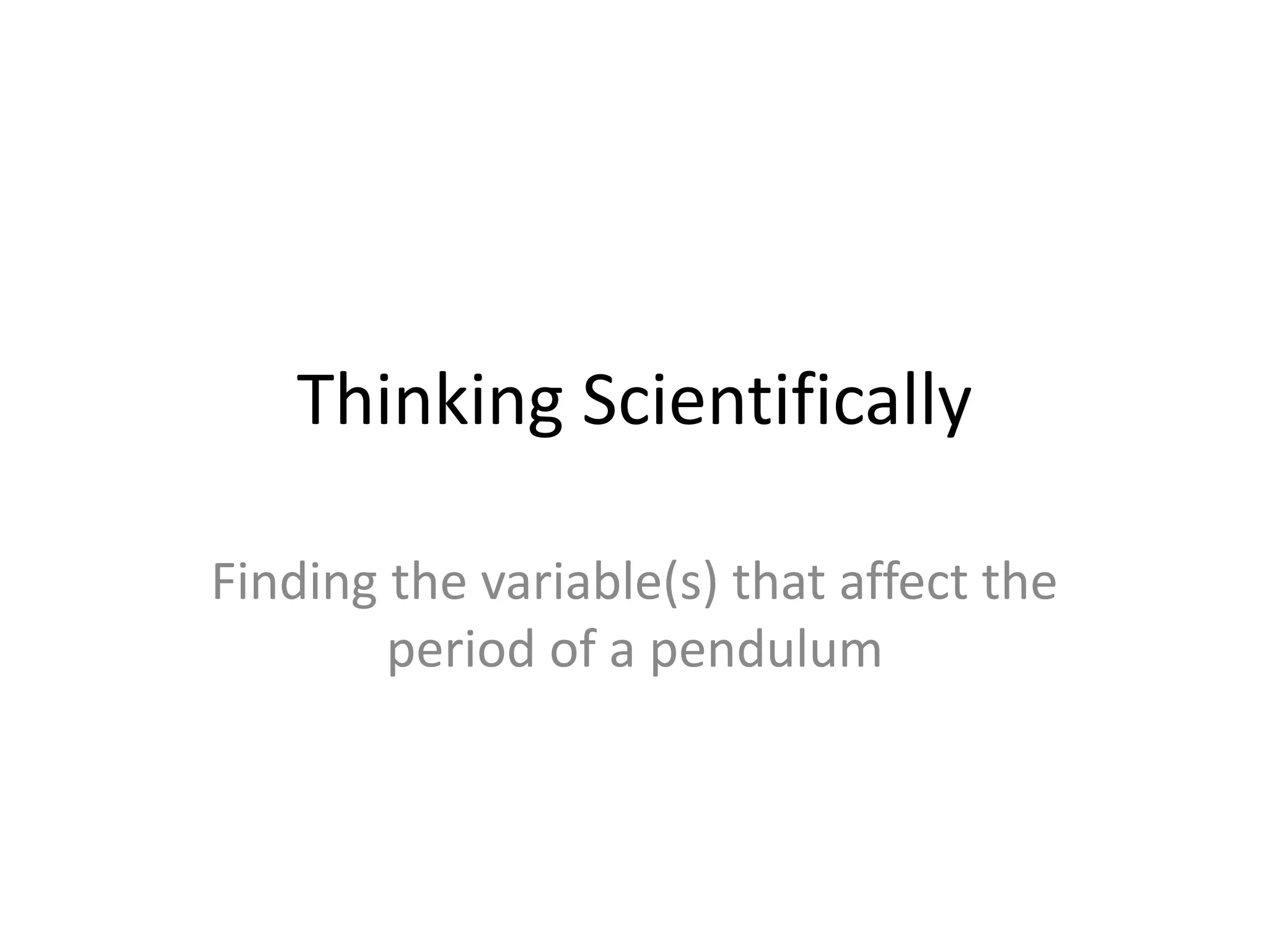 The document discusses how to determine the variables that affect the period of a pendulum. It explains that the length of the pendulum, measured from the point of suspension to the center of mass of the bob, affects its period. The variables that do affect the period of a pendulum are its length and mass. Students should analyze their data to determine if changes in these variables resulted in changes to the period and whether their results match the equation that describes the relationship between variables and period of a pendulum.