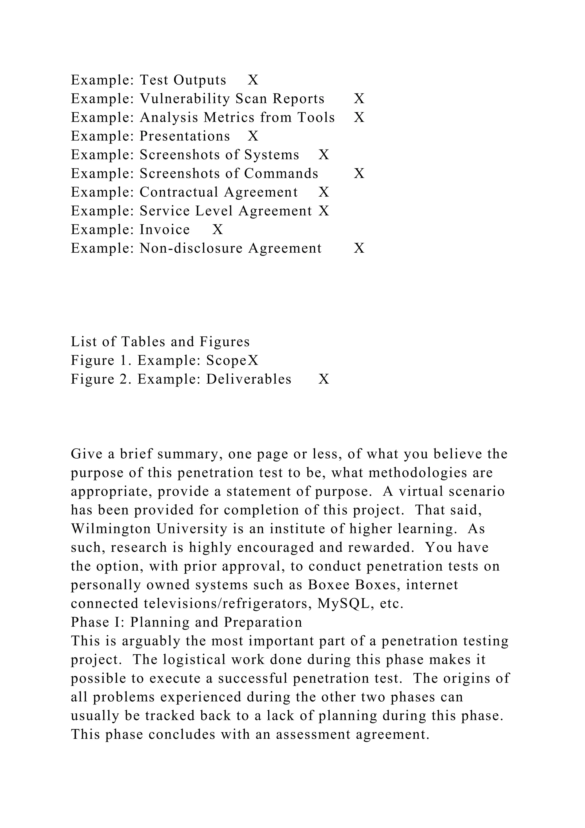 The document outlines a comprehensive methodology for conducting penetration testing, divided into three phases: planning and preparation, assessment, and closing activities. It covers essential aspects such as scope definition, assessment agreements, information gathering techniques, and detailed reporting to stakeholders. Additionally, it emphasizes the importance of a structured approach to ensure successful execution and communication of findings from the penetration test.