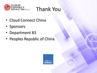 This document discusses penetration testing of cloud environments. It begins with background on the speaker and assumptions about an existing cloud hosting plan transitioning to cloud data centers. It then covers the attack surface and types of attacks for public, private, and hybrid clouds. Specific attack vectors discussed include exposed interfaces, malicious insiders, hypervisor and routing attacks, and certificate issues. The document concludes with questions about properly testing and migrating to the cloud.
