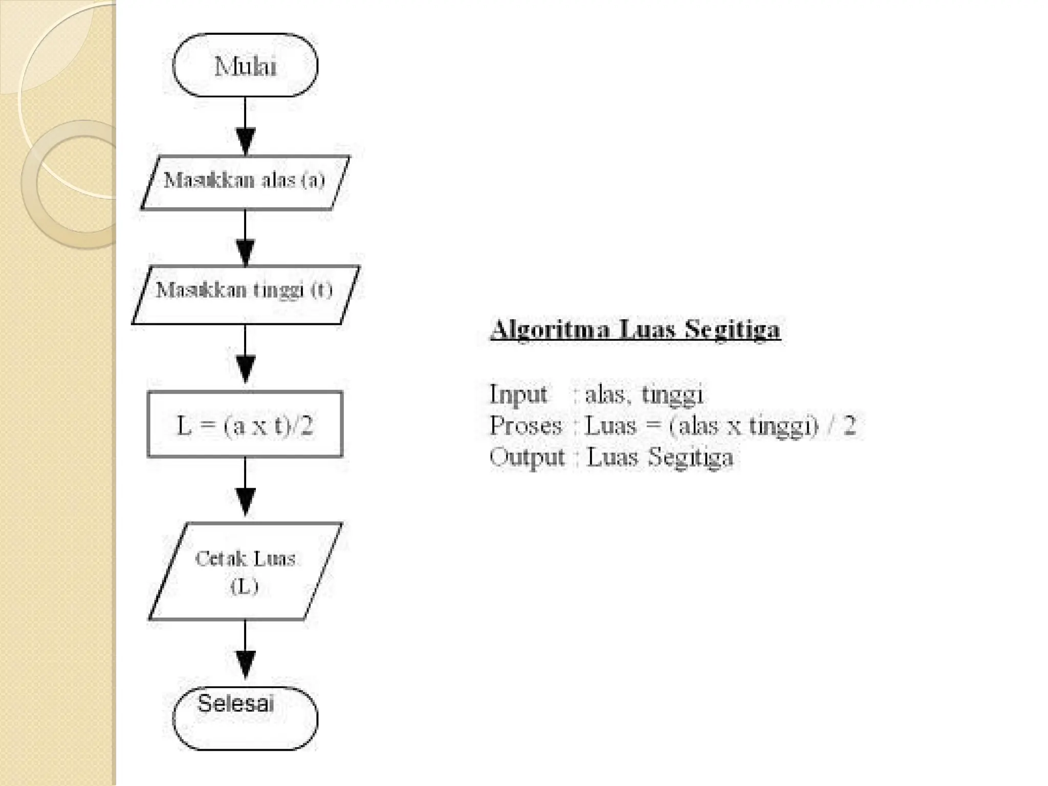 § Hitung luas (L), yaitu 0.5 * alas * tinggi