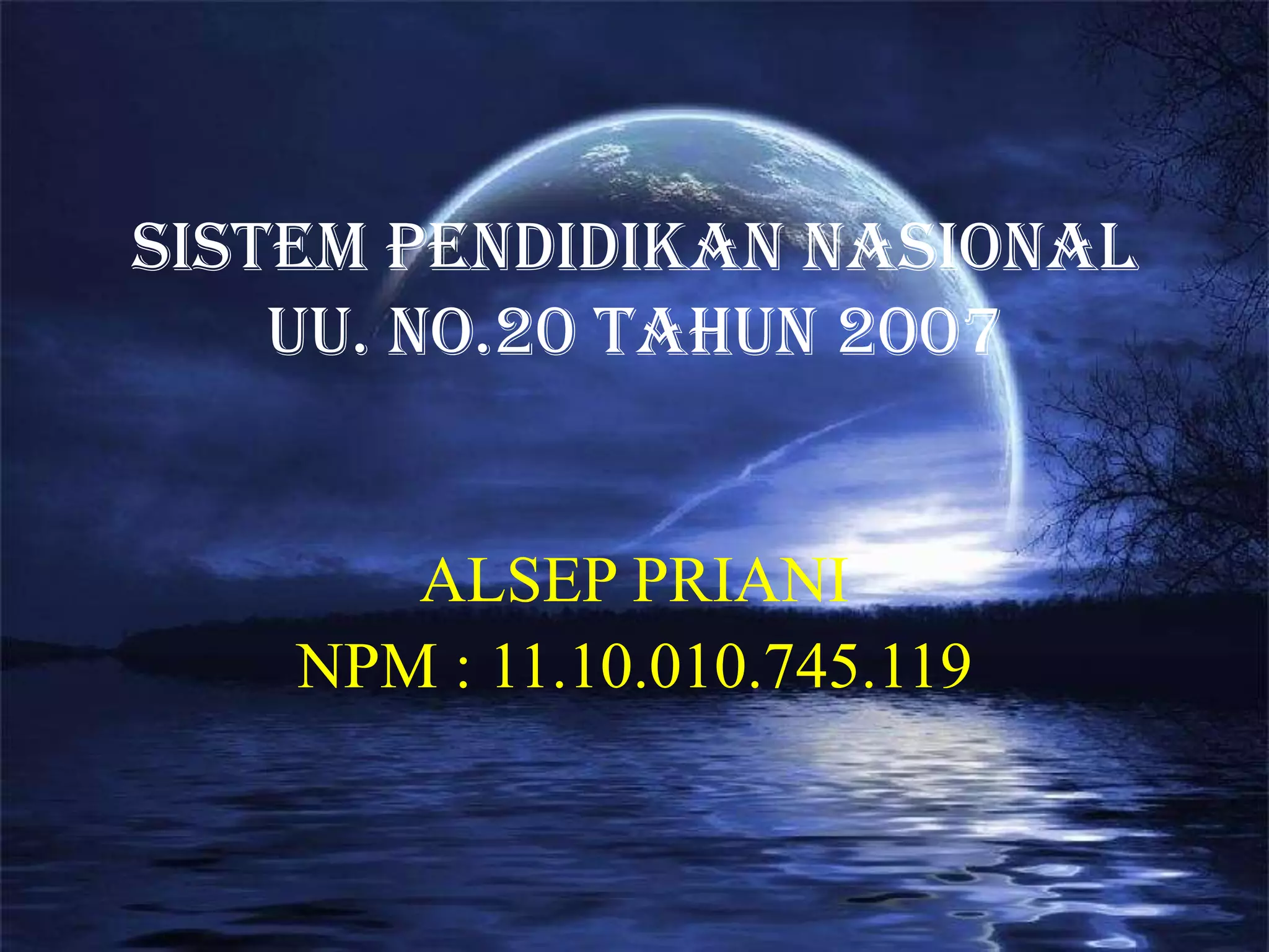 Sistem pendidikan nasional di Indonesia didasarkan pada tujuan-tujuan yang ditetapkan dalam Undang-Undang Dasar 1945 untuk mencerdaskan kehidupan bangsa serta meningkatkan iman dan ketakwaan terhadap Tuhan Yang Maha Esa. Pemerintah menyelenggarakan sistem pendidikan nasional ini berdasarkan undang-undang dan senantiasa memperbarui visi, misi, serta strateginya untuk membangun sumber daya manusia yang berkualitas.