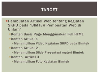 Dokumen ini menjelaskan tentang pengayaan konten web dengan menggunakan Drupal dan HTML, mencakup berbagai tag HTML serta cara penggunaannya, seperti pembuatan artikel, tautan, dan tabel. Selain itu, terdapat panduan untuk mengunggah video ke YouTube, serta mengunggah konten ke Slideshare dan Flickr. Tutorial ini ditujukan untuk meningkatkan pemahaman dalam pengelolaan konten web dan multimedia.