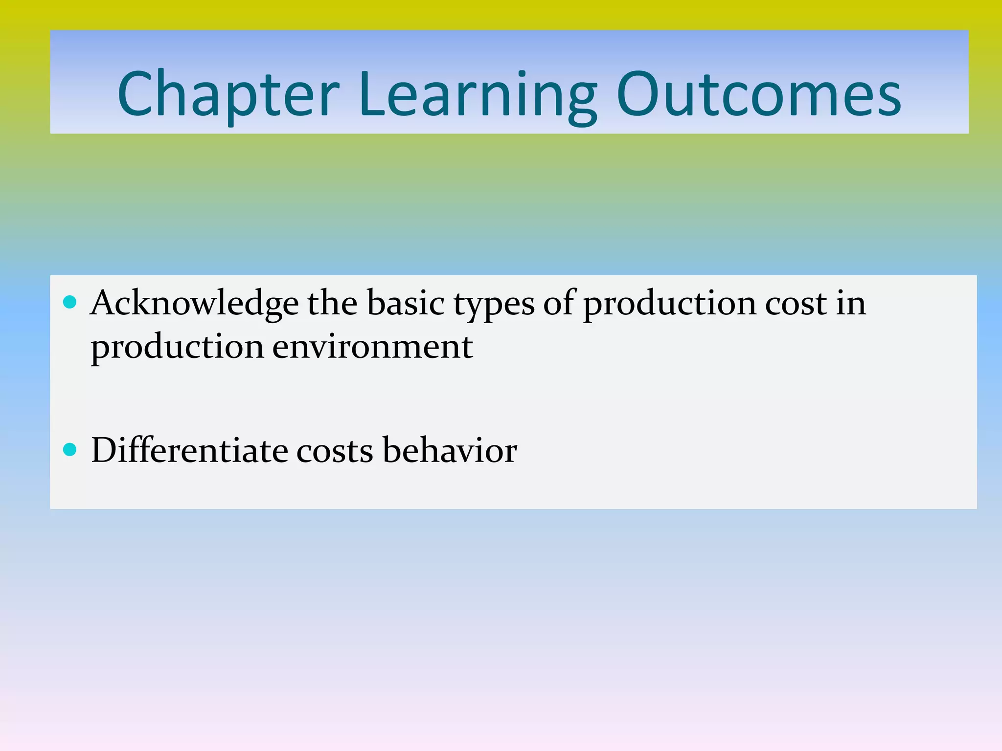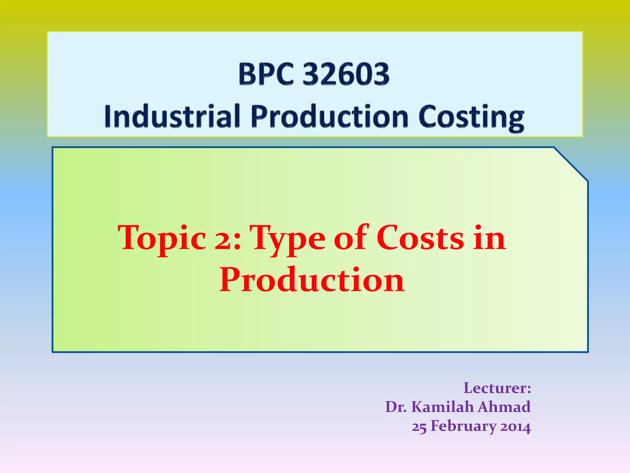 This document discusses types of production costs and cost behavior. It begins by introducing direct materials, direct labor, and manufacturing overhead as the three main types of manufacturing costs. It then differentiates between product costs, which include these manufacturing costs, and period costs like selling and administrative expenses. The document goes on to explain different patterns of cost behavior like variable, fixed, step, and mixed costs. It also discusses how management decisions around capacity, commitments, and discretion can influence cost behavior.