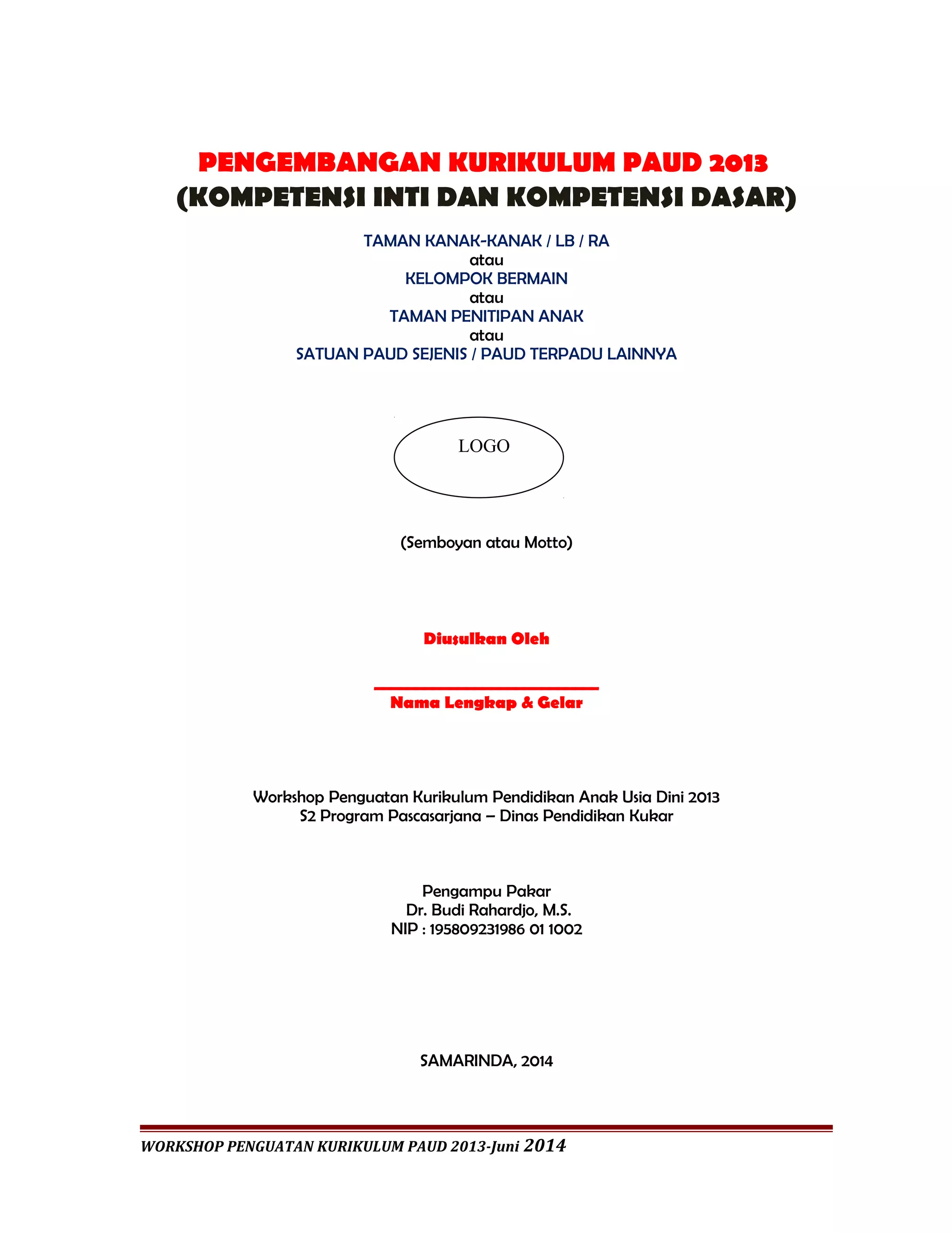 Dokumen ini menguraikan pengembangan kurikulum PAUD 2013, mencakup kompetensi inti dan dasar untuk anak usia dini. Terdapat pedoman dan indikator perkembangan untuk pendidikan formal dan nonformal, serta berbagai naskah akademik terkait. Implementasi kurikulum ini diharapkan dapat menciptakan perilaku hidup sehat, kreativitas, dan pengembangan karakter anak.