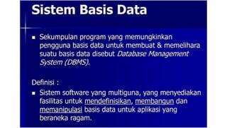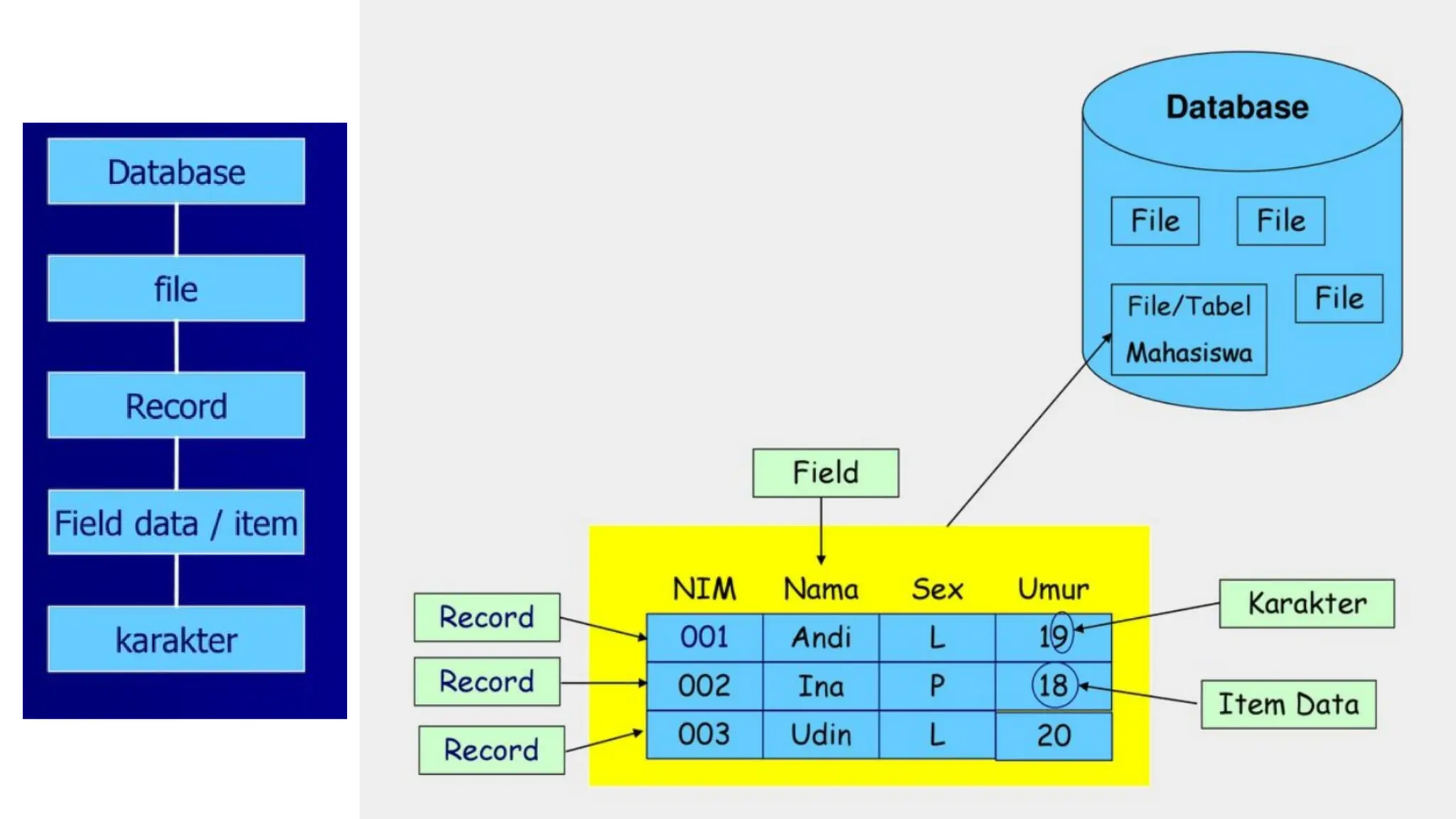 yang menyimpan data dalam bentuk tabel dengan baris dan