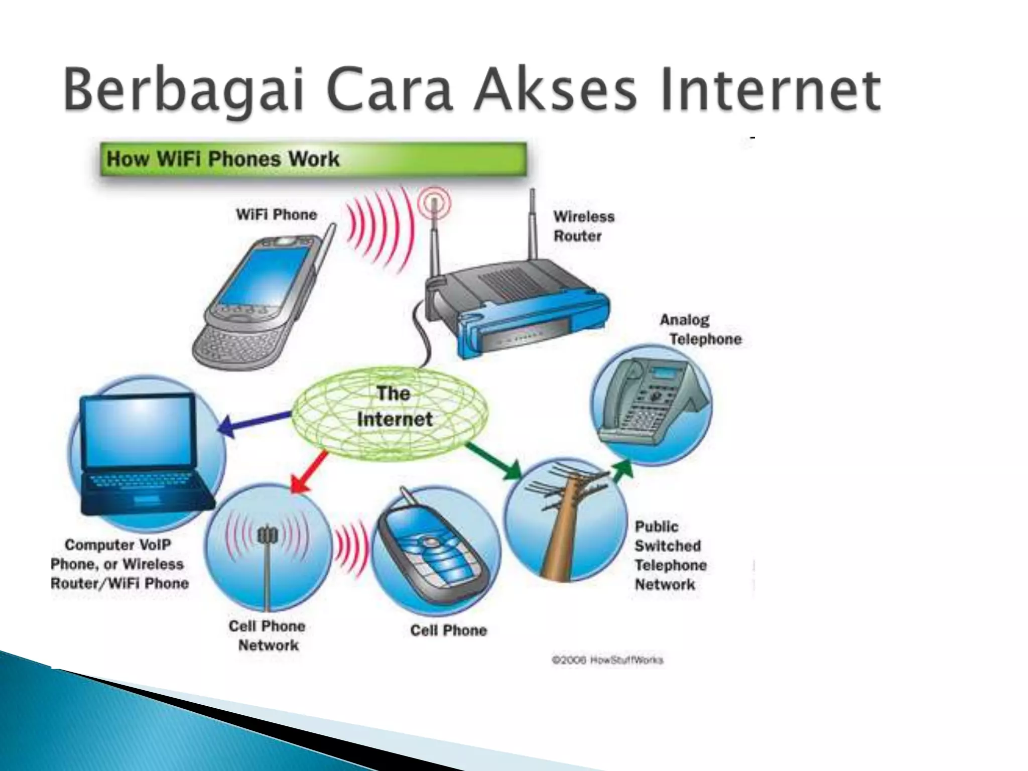 bentuk akses Internet yang umum, yaitu dial-up, dan jalurlebar. Di Indonesia, seperti