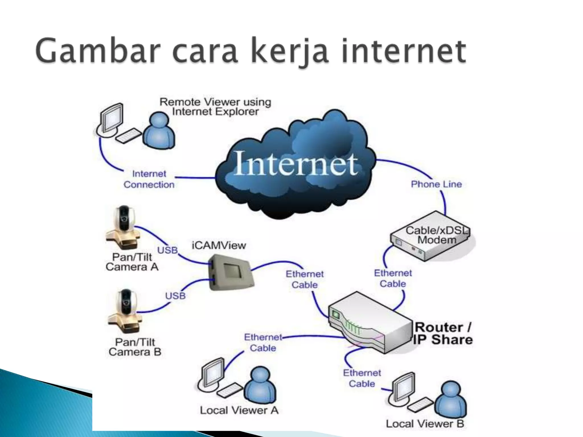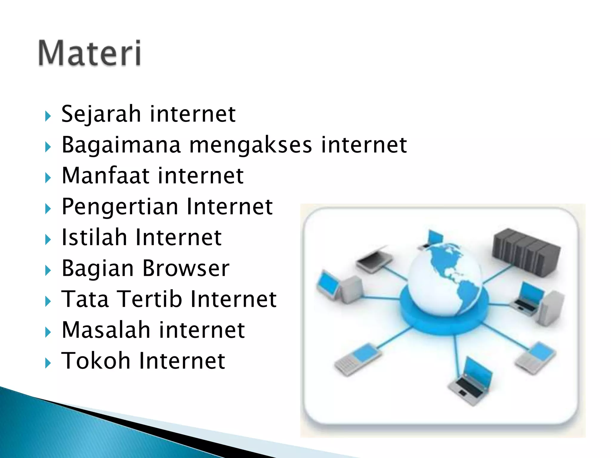 Internet adalah jaringan komputer terbesar di dunia yang terdiri dari sekumpulan jaringan komputer yang terhubung. Dokumen ini menjelaskan sejarah internet, cara kerja internet, manfaat, dan istilah-istilah yang terkait dengan internet.