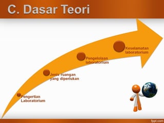 Dokumen ini membahas tentang observasi enam laboratorium yang dilakukan antara 12-14 Februari 2014, termasuk karakteristik, fungsi, kelengkapan alat, dan pengelolaan laboratorium. Selain itu, ada penjelasan tentang keselamatan laboratorium serta peralatan yang digunakan untuk berbagai mata kuliah. Observasi menyampaikan pentingnya jadwal, tata tertib, dan ketersediaan alat dalam memelihara kelancaran penggunaan laboratorium.