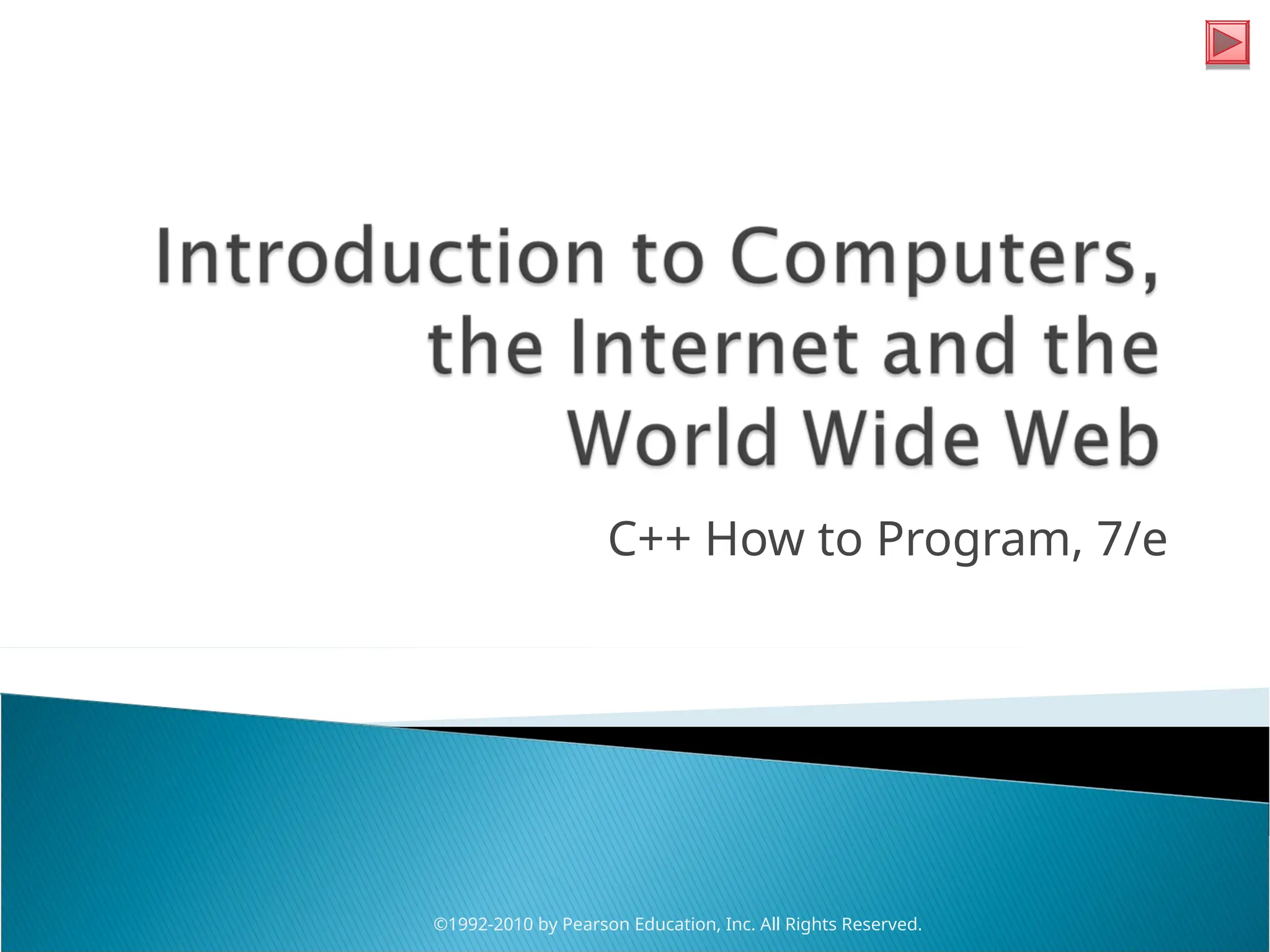 was initiated in the late 1960s with funding supplied by the U.S. Department of Defense. Originally designed to connect the main computer systems of about a dozen universities and research organizations. With the introduction of the World Wide Web, the Internet has exploded into the world’s premier communication mechanism. The Internet and the World Wide Web are surely among humankind’s most important and profound creations. ©1992-2010 by Pearson Education, Inc. All Rights Reserved.