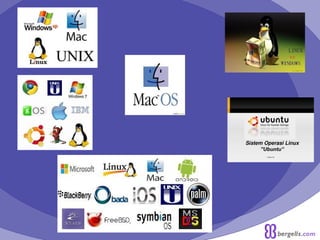 Sistem operasi adalah perangkat lunak yang mengelola sumber daya perangkat keras dan menjalankan aplikasi, termasuk komponen seperti kernel, driver, dan shell. Terdapat berbagai jenis sistem operasi, termasuk real time, single user, multi-user, dan multitasking, yang masing-masing memiliki fungsi dan karakteristik tertentu. Contoh sistem operasi meliputi Windows, Unix, Mac OS, dan Linux, masing-masing dengan kelebihan dan kekurangan yang berbeda.