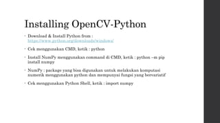 Ketik : python –m pip install {nama file OpenCV yang telah di download}
