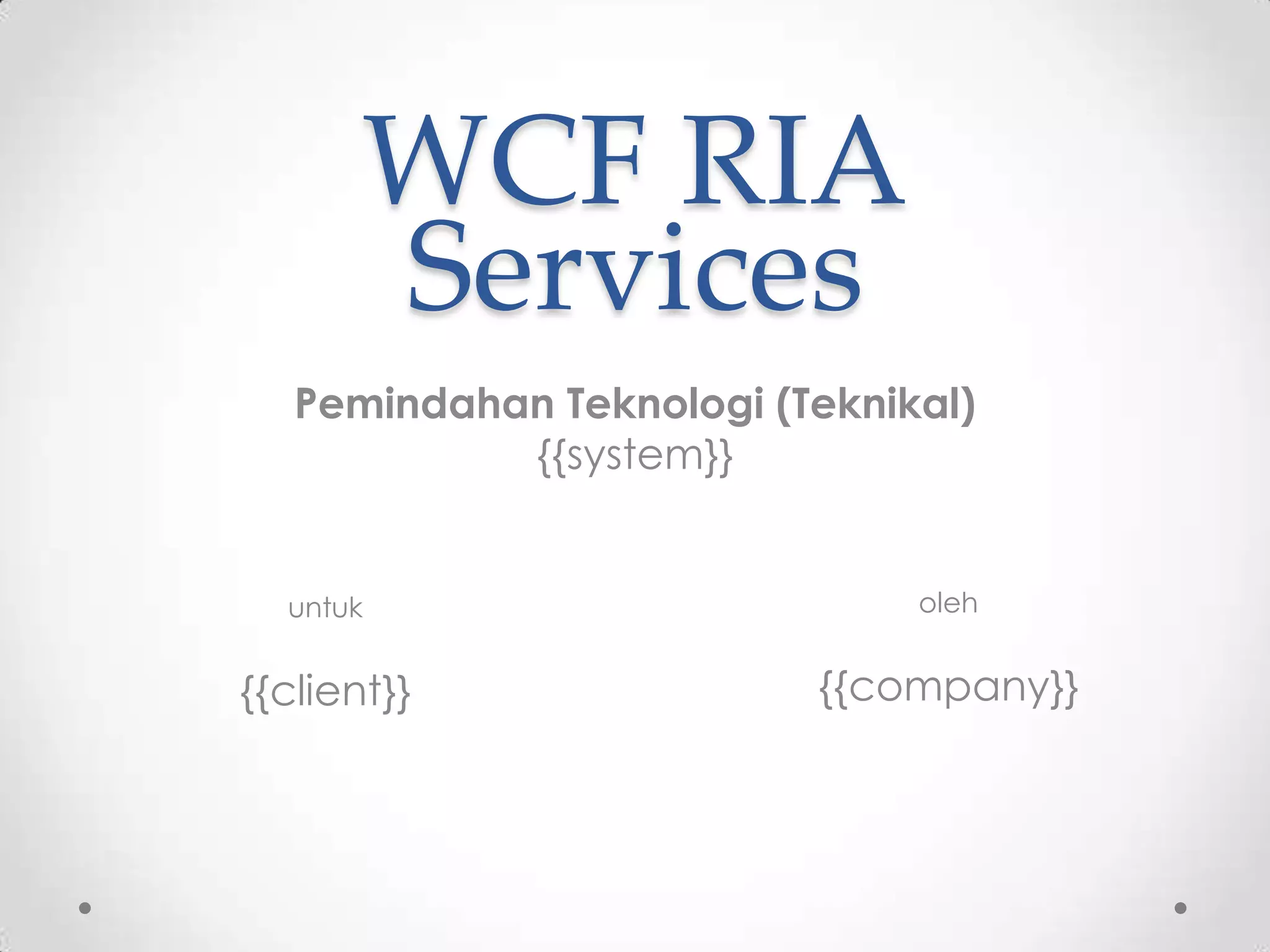 Dokumen ini membahas teknologi pemindahan berdasarkan WCF (Windows Communication Foundation) untuk komunikasi antara sisi klien dan server menggunakan layanan web SOAP/XML. Terdapat juga fokus pada integrasi dengan Silverlight, serta konsep domain layanan dan objek transfer data (DTO). Contoh implementasi ditunjukkan dalam konteks pemindahan teknologi ini.