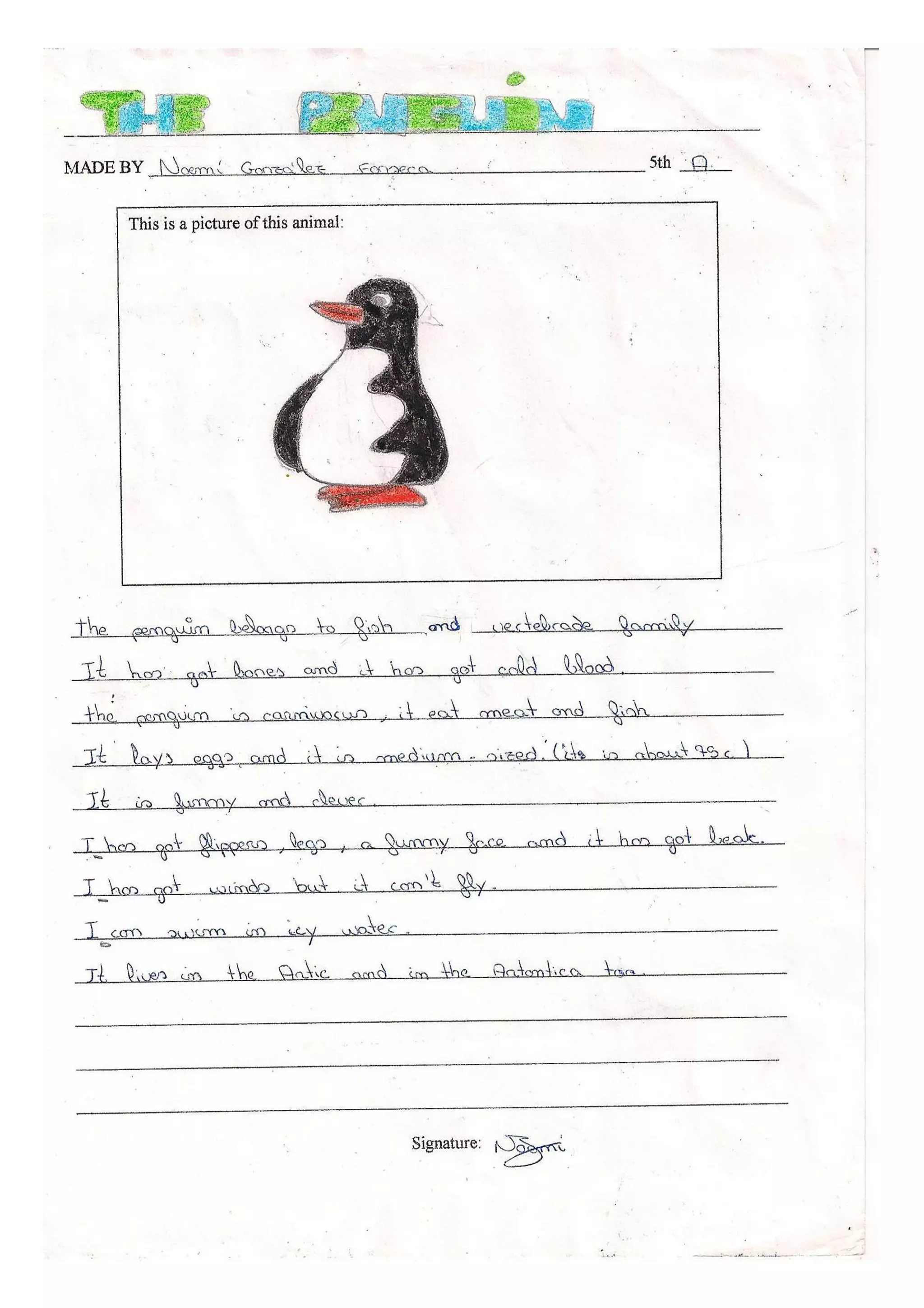 Description of a penguin in English