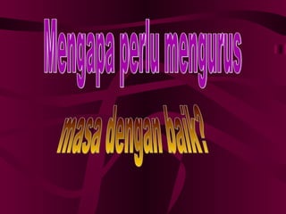 Pengurusan masa adalah penting untuk mencapai kejayaan dan meningkatkan produktiviti dalam kehidupan. Dengan merancang dan mengatur aktiviti secara bijak, individu dapat mengelakkan gangguan dan menyelesaikan kerja tepat pada masanya. Langkah-langkah seperti menyusun aktiviti mengikut kepentingan dan membuat jadual harian membantu dalam memanfaatkan masa dengan lebih berkesan.