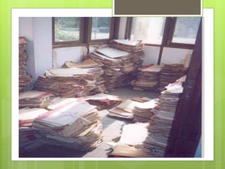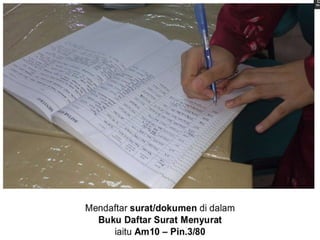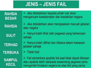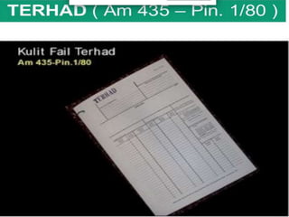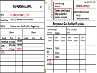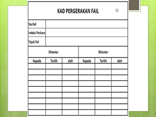 Dokumen ini membincangkan pengurusan rekod dan fail dalam organisasi, termasuk prosedur untuk membuka dan menyimpan fail dengan betul. Ia juga menjelaskan kitaran hayat rekod dan jenis-jenis rekod yang perlu dikelola, serta piawaian yang harus dipatuhi dalam pengurusan rekod. Selain itu, dokumen ini menggariskan tanggungjawab individu dalam mengekalkan dan melupuskan rekod dengan efisien.
