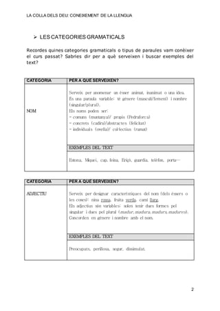 Recordes quines categories gramaticals o tipus de paraules vam conèixer
