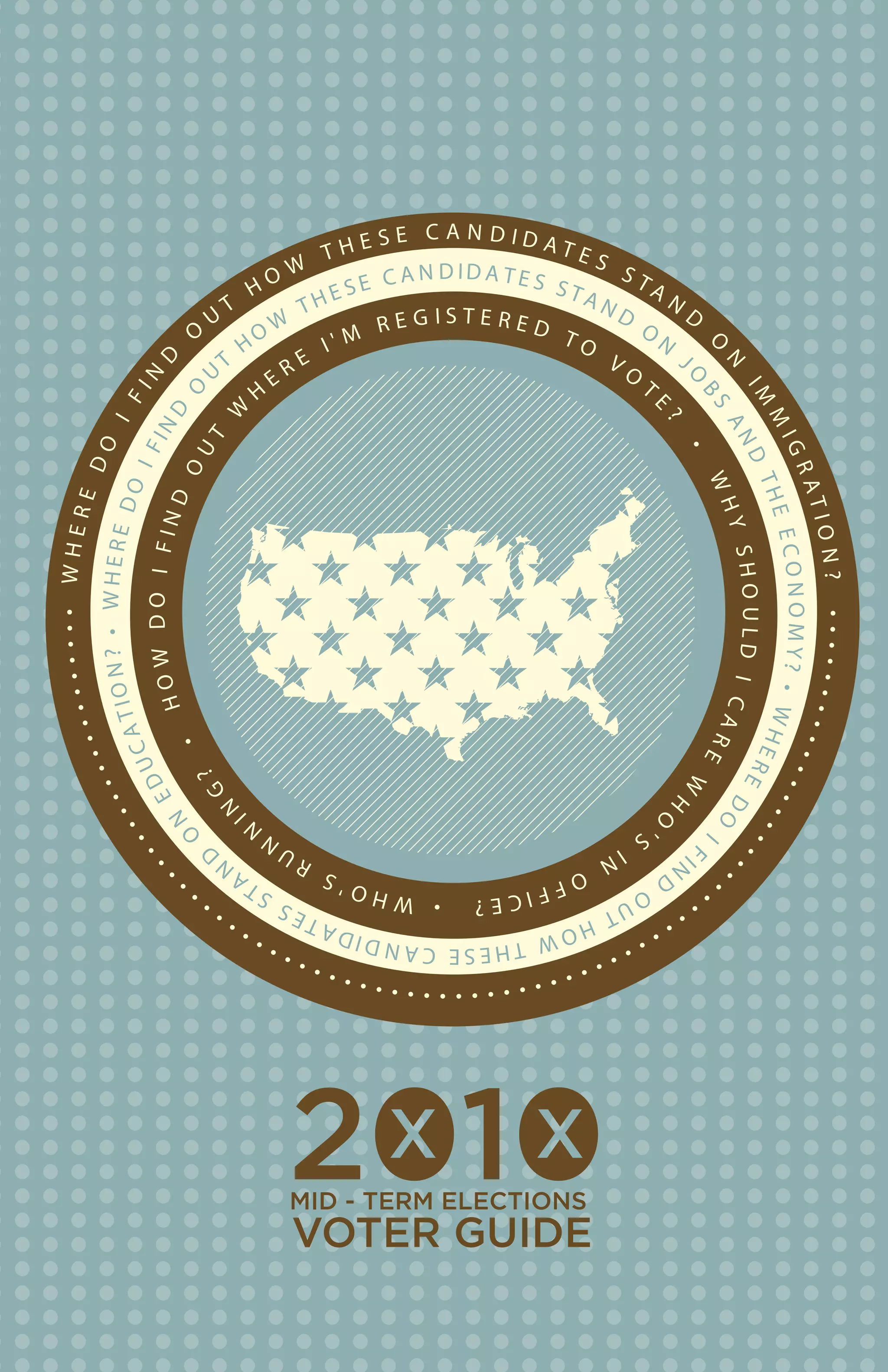 This document provides a voter guide for the 2010 midterm elections in Pennsylvania. It outlines key races and ballot initiatives, explains how to register and vote, including options for absentee voting. Issues covered include healthcare, housing, jobs, education, immigration and more. The guide encourages readers to be informed on where candidates stand and to make their voices heard by voting on November 2nd.