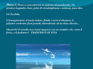 Il narratore vive una notte inquieta, incapace di dormire a causa di pensieri e domande che affollano la sua mente. Cerca di rilassarsi concentrandosi su pensieri leggeri e inconsueti, sperando di allontanare l'ansia. La frustrazione cresce poiché non riesce a controllare il flusso dei pensieri come un semplice apparecchio elettrico.