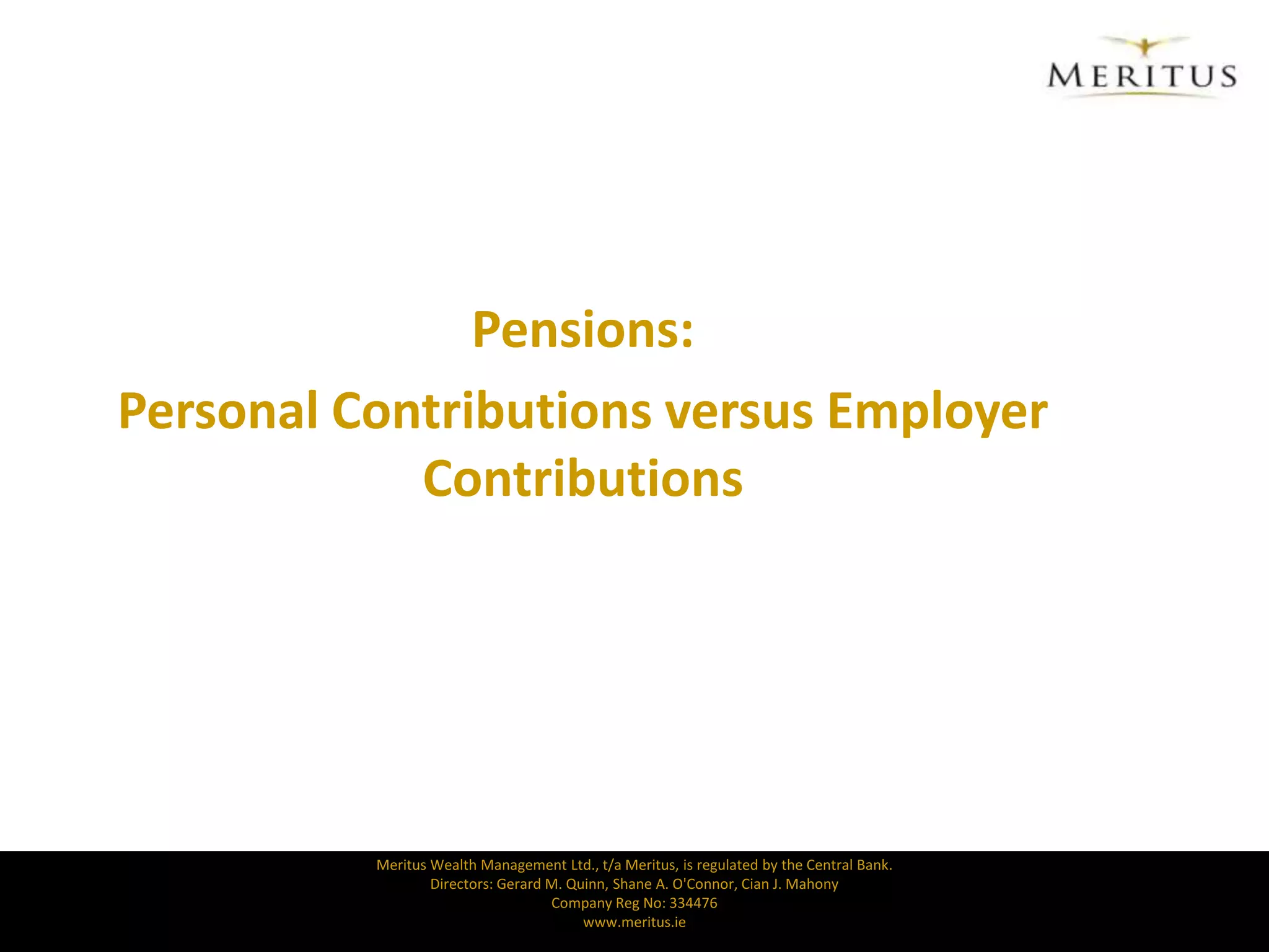 There are key differences between personal pensions for sole traders and company pensions for directors. Personal pensions for sole traders have earnings caps and relief that is restricted to a percentage of earnings. Company pensions for directors allow for greater potential funding as companies can claim tax relief on contributions and directors are not subject to earnings caps. Company pensions also provide more favorable tax treatment as individuals do not pay USC tax on employer contributions and receive effective tax relief of 41% on contributions.