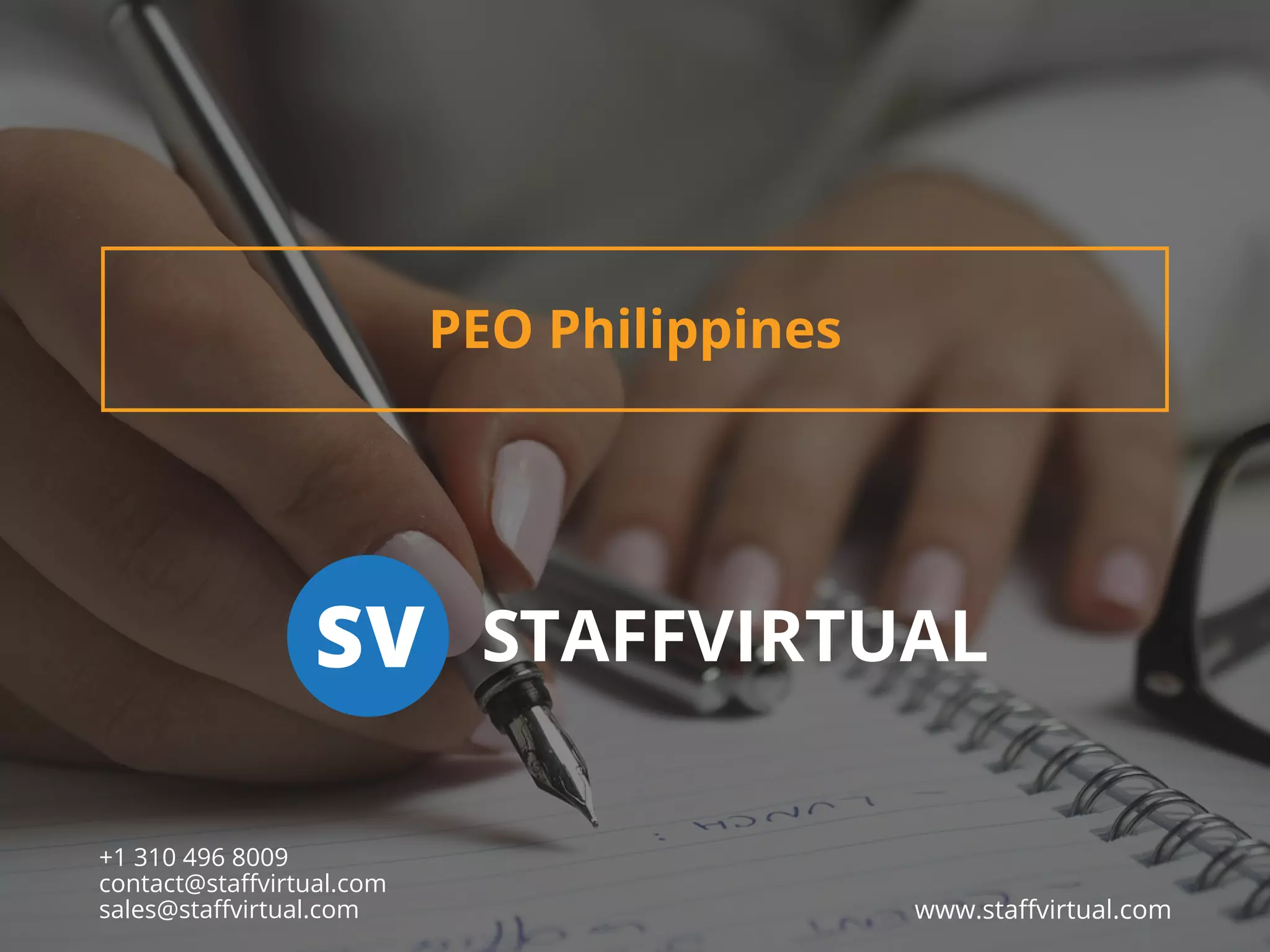 This document discusses the benefits of using a Professional Employer Organization (PEO) located in the Philippines. It notes that PEOs in the Philippines can provide 2-3 employees for the cost of one in developed countries, saving on payroll costs. PEOs handle all HR functions like recruitment and payroll administration, allowing companies to focus on their core business. The document promotes one PEO company in particular and provides information on how using a PEO works.
