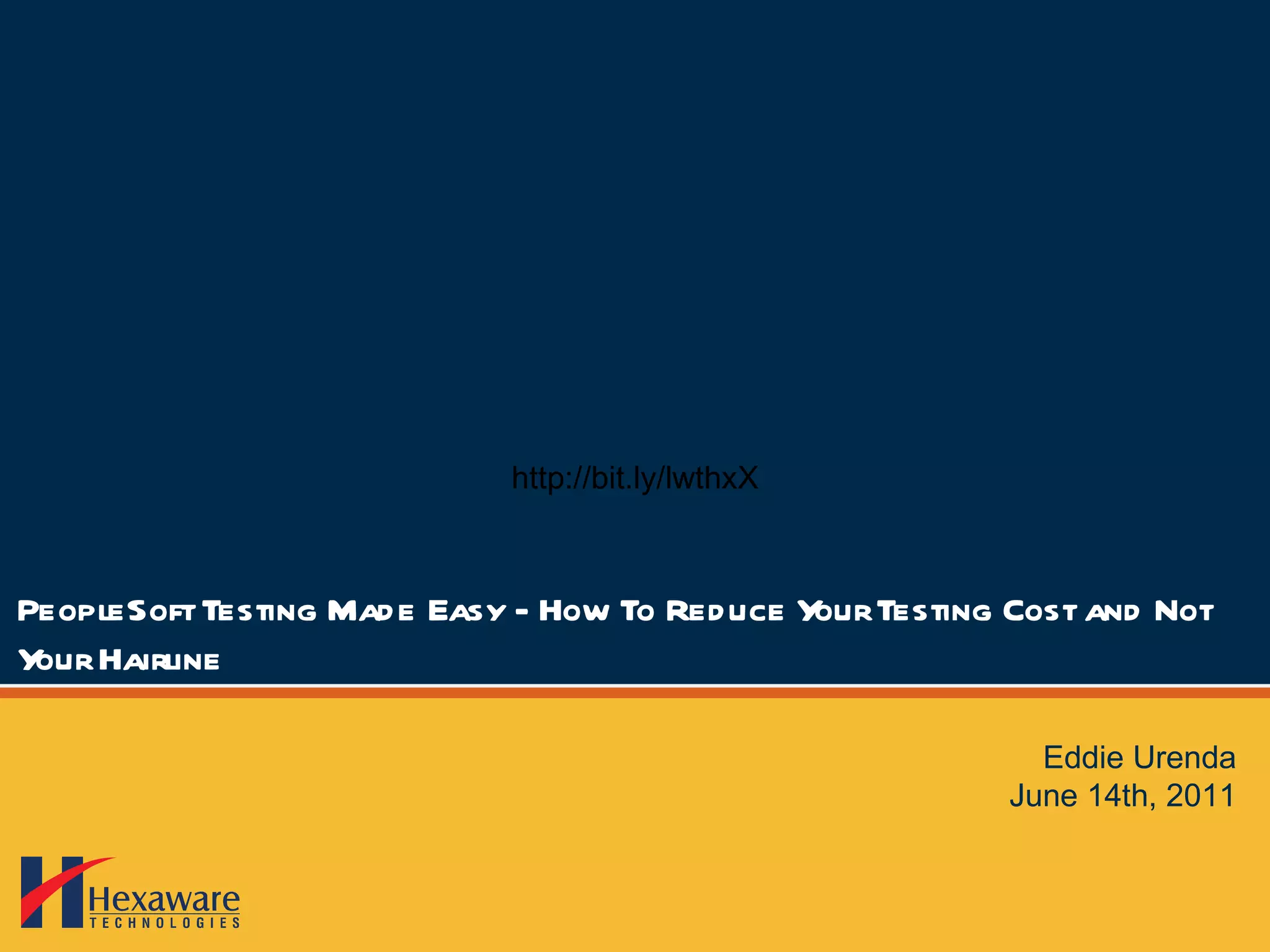 The document discusses Hexaware's PeopleSoft testing capabilities and services. It provides an overview of Hexaware, their PeopleSoft alliance partnership since 1997, and their PeopleSoft testing competencies. The agenda outlines discussing lessons learned from past PeopleSoft engagements, important testing considerations, and answering FAQs about PeopleSoft testing and Hexaware's PeopleSoft Testing Accelerator Kit (PTAK). PTAK is presented as providing manual test scenarios and an approach to accelerate testing through reusable components.