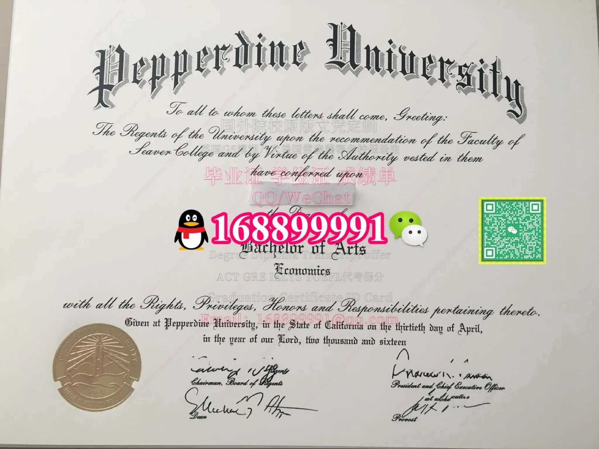 Pepperdine University degree offer diploma Transcript