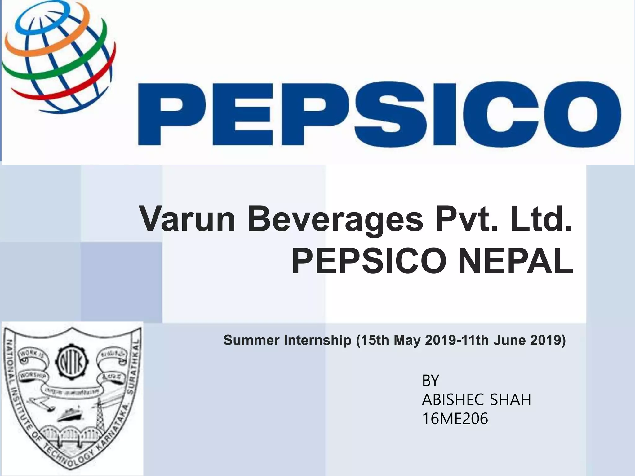 Varun Beverages Pvt. Ltd. is a franchisee of PepsiCo beverages in Nepal. It has a manufacturing plant in Kathmandu with 500 employees. The plant produces carbonated drinks like Pepsi, 7Up, and Mountain Dew as well as non-carbonated drinks like Tropicana and Mirinda. The internship summary describes the company's production processes including syrup preparation, blowing, filling, and packaging lines. It also discusses the plant's utilities like water treatment, power generation, air compression, and quality control procedures. The intern makes recommendations to improve production tracking, health and safety, and maintenance management.