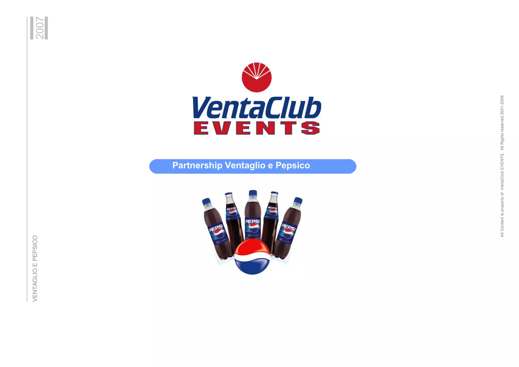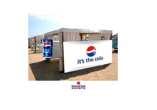 Il documento descrive una partnership tra Ventaglio e Pepsico che mira a sfruttare le sinergie tra le due aziende attraverso eventi, marketing e branding nei villaggi turistici e al Ventaglio Beach Club. Pepsico avrà visibilità durante attività come happy hours, eventi sportivi e momenti di intrattenimento, offrendo i suoi prodotti ai consumatori in vari contesti. La collaborazione include anche strategie di marketing online e campagne educative sui prodotti Pepsico per massimizzare l'engagement con i clienti.
