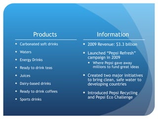 Pepsi launched the "Cool Eco-School" campaign targeting college students (ages 18-25) to encourage environmental awareness through a contest rewarding the 'greenest school' in America. The campaign will utilize social media platforms such as Twitter, Facebook, and YouTube for promotional activities and voting, backed by a $25 million budget. It aims to enhance Pepsi's online presence, increase brand awareness, and improve sales, with a timeline running from April to September 2023, culminating in a concert for winners in October.