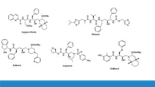 This document provides an overview of peptidomimetics. It begins with the evolution of peptidomimetics and how they were developed to overcome limitations of peptides as drugs. It then covers classification of peptidomimetics, design strategies like modifying amino acids and imposing structural constraints, and examples of peptidomimetic drugs that inhibit enzymes like ACE, thrombin, and HIV protease. The document concludes by stating peptidomimetics are an important area of drug design for developing small molecule mimics of peptide functions.
