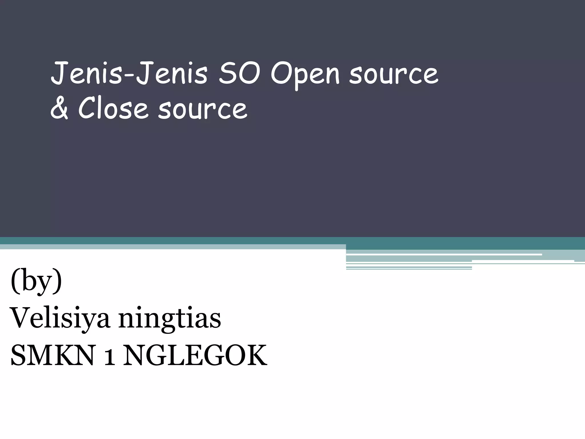 1. Dokumen ini membahas tentang jenis-jenis sistem operasi open source dan close source, termasuk pengertian, tujuan, kelebihan dan kekurangan masing-masing.