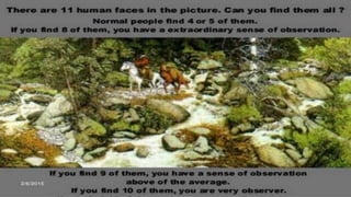 Perception is the process by which individuals organize and interpret sensory impressions to understand their environment. It involves discriminating between stimuli and assigning meaning. Principles like figure-ground relationship, closure, grouping, simplicity, and contrast influence perception. Factors like sense organs, memory, interests, needs, and desires also impact perception. Errors can occur in the form of illusions, which are misinterpretations of stimuli, or hallucinations, which involve perceiving something without an actual stimulus. Inaccurate perception can result from issues with sense organs, stimuli, attention, health, or lack of guidance about what should be perceived.