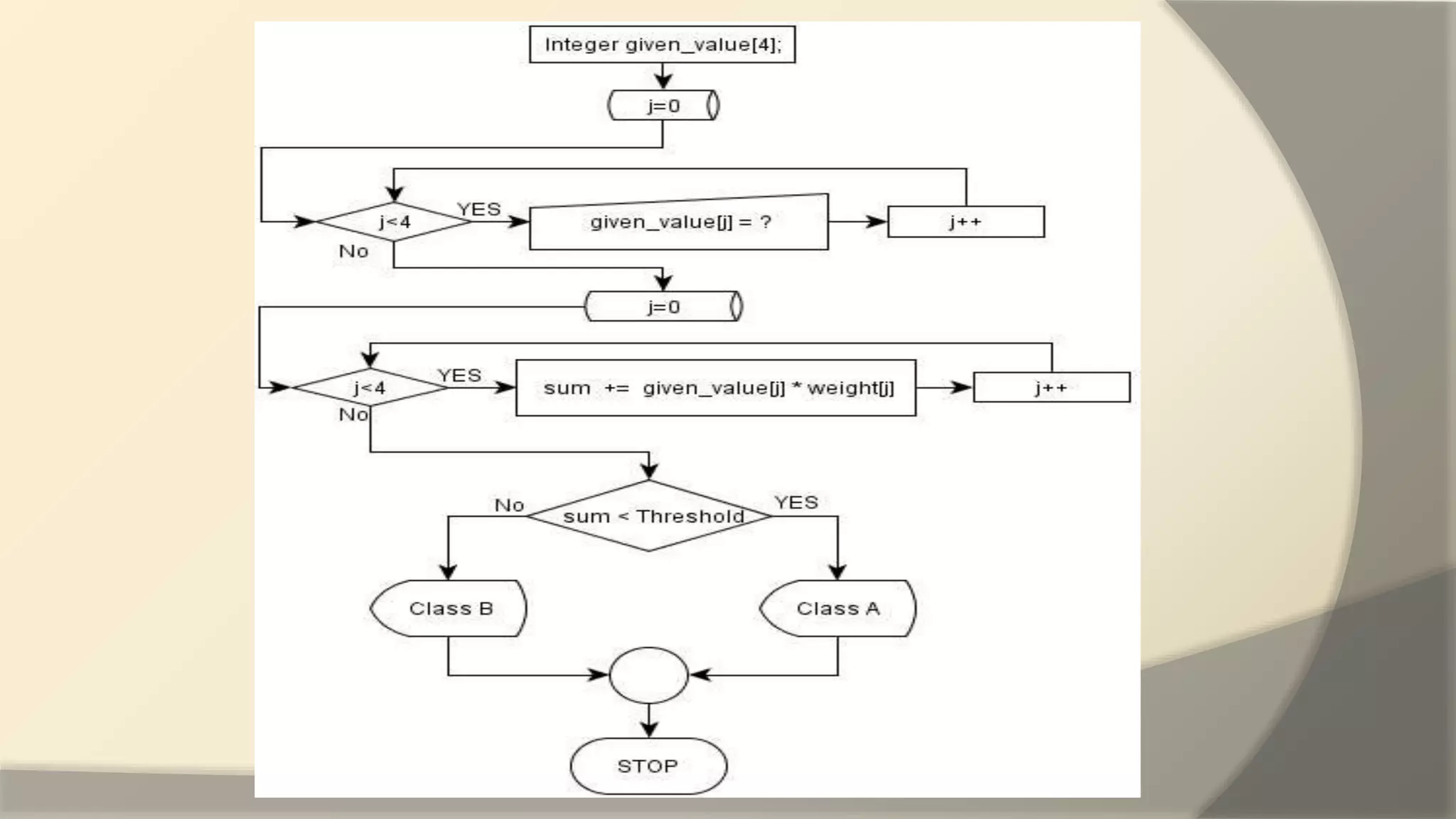weighted input with the help of the threshold activation function or step
