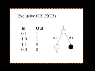 1. A perceptron is a basic artificial neural network that can learn linearly separable patterns. It takes weighted inputs, applies an activation function, and outputs a single binary value.