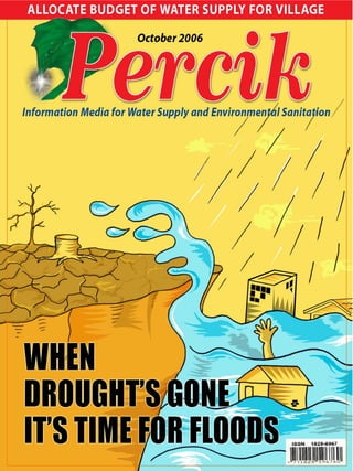 The document discusses the challenges of water supply and environmental sanitation in Indonesia, highlighting the cycle of drought and floods affecting various regions. It emphasizes the inadequacy of current infrastructure to meet the population's needs and the ineffectiveness of governmental programs in addressing these issues. The publication also invites contributions and comments from readers to help improve its offerings on these critical topics.