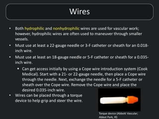 • Always adv,rnce a catheter or sheath over a wire or dilator to avoid