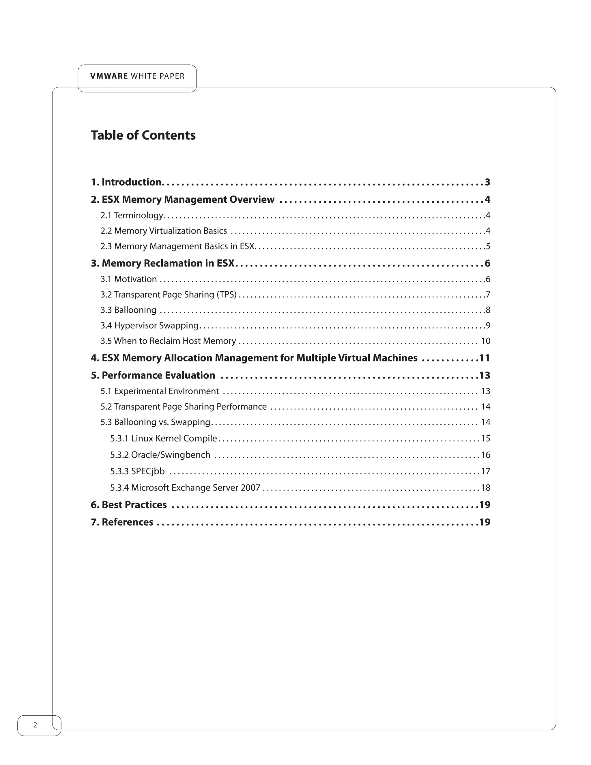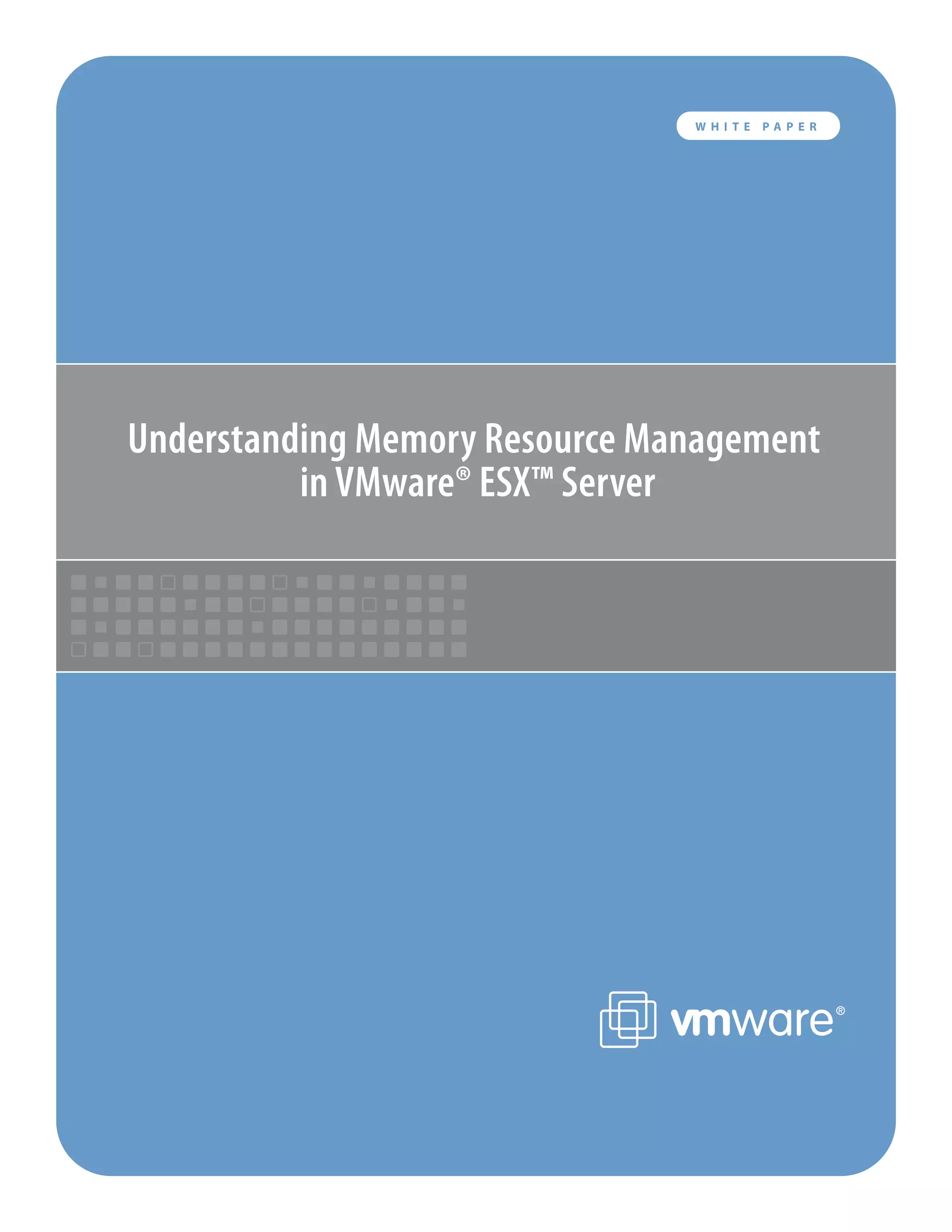 This document discusses memory management in VMware ESX Server. It provides an overview of ESX memory management concepts including terminology, memory virtualization basics, and memory management in ESX. It then describes techniques for memory reclamation in ESX such as transparent page sharing, ballooning, and hypervisor swapping. It evaluates the performance of these techniques and provides best practices for host and guest memory usage.