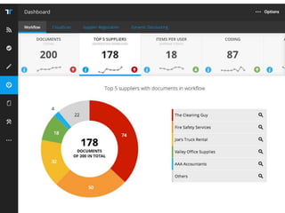 The document outlines a webinar focused on improving touchless invoicing processes and the role of automation in finance, specifically for CFOs. It discusses major challenges faced by financial operations, such as managing paper documents and compliance, while emphasizing the importance of e-invoicing and collaborative procurement practices. The webinar aims to offer insights and strategies for enhancing financial management through technology and effective process changes.