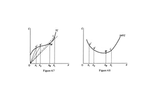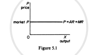 The document explains the concept of markets in economics, emphasizing that a market is not just a physical place but an arrangement for buying and selling commodities. It details the characteristics of perfect competition as a market structure, outlining key assumptions such as product homogeneity, many buyers and sellers, and free entry and exit of firms. Additionally, it discusses cost curves and their shapes in the context of short-run production, highlighting the relationship between variable factors and unit costs.
