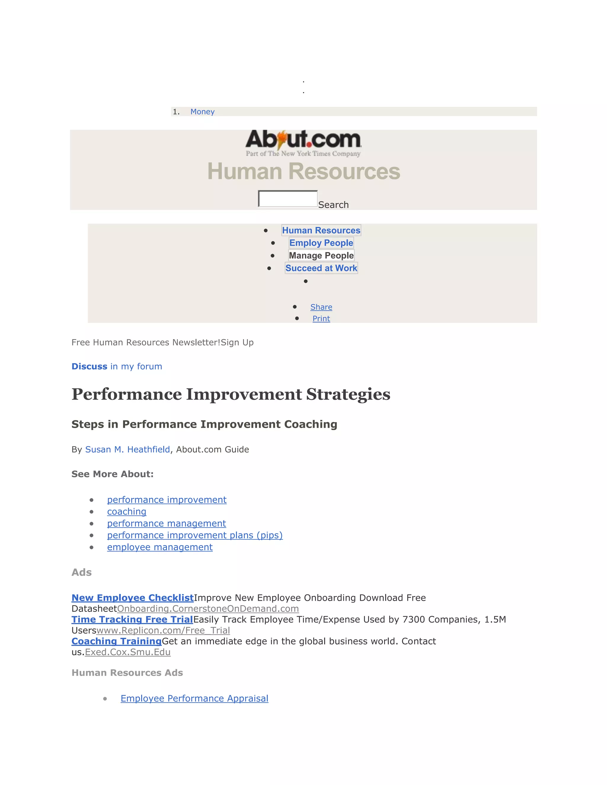 This document provides guidance on performance improvement strategies and coaching employees. It outlines key steps to diagnose performance problems, including understanding the work system, goals, competency, tools, time, training, and more. An example is given of using recommendation and commendation techniques to coach an employee, focusing on behavior change, getting their perspective, agreeing on actions, and ending positively. The goal is empowering employees to change themselves and feel committed to improved performance.