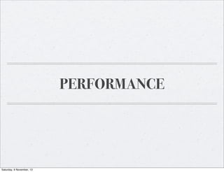 This document provides guidelines and techniques for profiling and optimizing performance. It discusses measuring performance using tools like Chrome Developer Tools, optimizing assets by minifying files and images, improving database queries with indexing and caching, and profiling code with tools like XHProf and the Chrome CPU profiler. The overall guidelines emphasized are to measure everything, start optimizations in the front-end, avoid unnecessary work, and optimize code last.