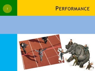 Performance evaluation is a systematic process for assessing an employee's job performance and productivity. It involves establishing performance standards and then measuring actual performance against those standards in regular meetings between the employee and their supervisor. The goals of performance evaluations are to ensure quality of work, provide feedback to help employees improve, identify training needs, and determine compensation decisions like salary increases or promotions. However, evaluations can be flawed if raters let personal biases or recent events influence their ratings rather than considering an employee's overall performance throughout the entire review period.