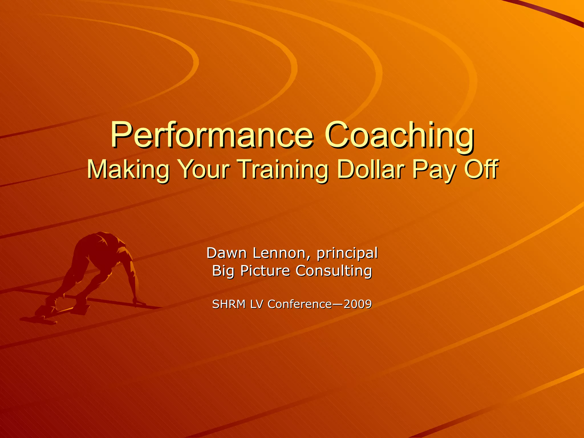 The document discusses how performance coaching can help organizations get more value from their training investments by improving employee capabilities and strengthening performance. It recommends that HR build a development culture that links training to targeted, job-specific performance coaching. Key points include: (1) Coaching is more effective than one-time training for fixing underperformers and accelerating growth; (2) To build a coaching culture, organizations should set goals, focus on job requirements, and hold supervisors accountable; (3) HR should promote coaching as a targeted investment, provide coaching options and services, and track benefits to build the business case for coaching.
