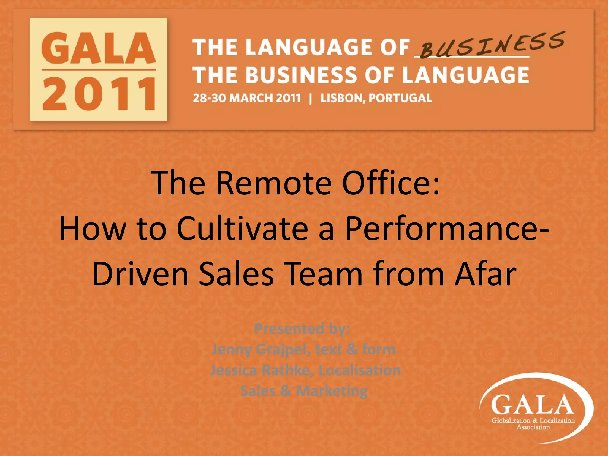 This document provides guidance on recruiting and managing remote sales teams. It discusses important attributes to look for in remote sales candidates, such as being self-motivated and able to work independently. Sample interview questions are provided to evaluate these attributes. Additional considerations for remote work include managing cultural differences, providing sales training and integration, and ensuring proper infrastructure and support are in place. Regular communication and goal setting are recommended for monitoring productivity and motivation.