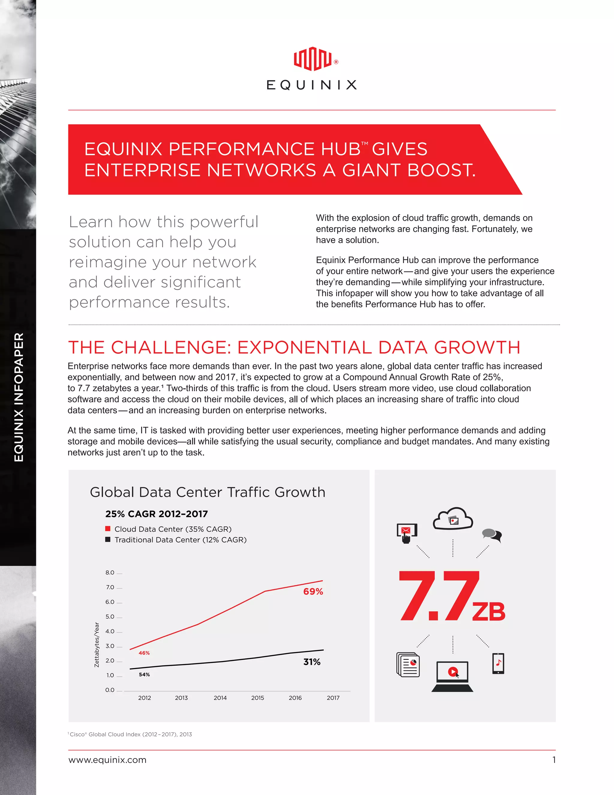 The document outlines five key trends impacting data centers: mobility, consumer technology, cloud services, hyperdigitization, and globalization, emphasizing their role in transforming challenges into strategic opportunities. It stresses the necessity for businesses to adapt their IT infrastructure to accommodate increasing mobile data traffic, the evolving demands of consumers, and the requirements of cloud integration. To remain competitive, companies must implement a strategic data center that is scalable, localized, and capable of supporting global connectivity while maintaining security.