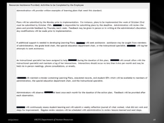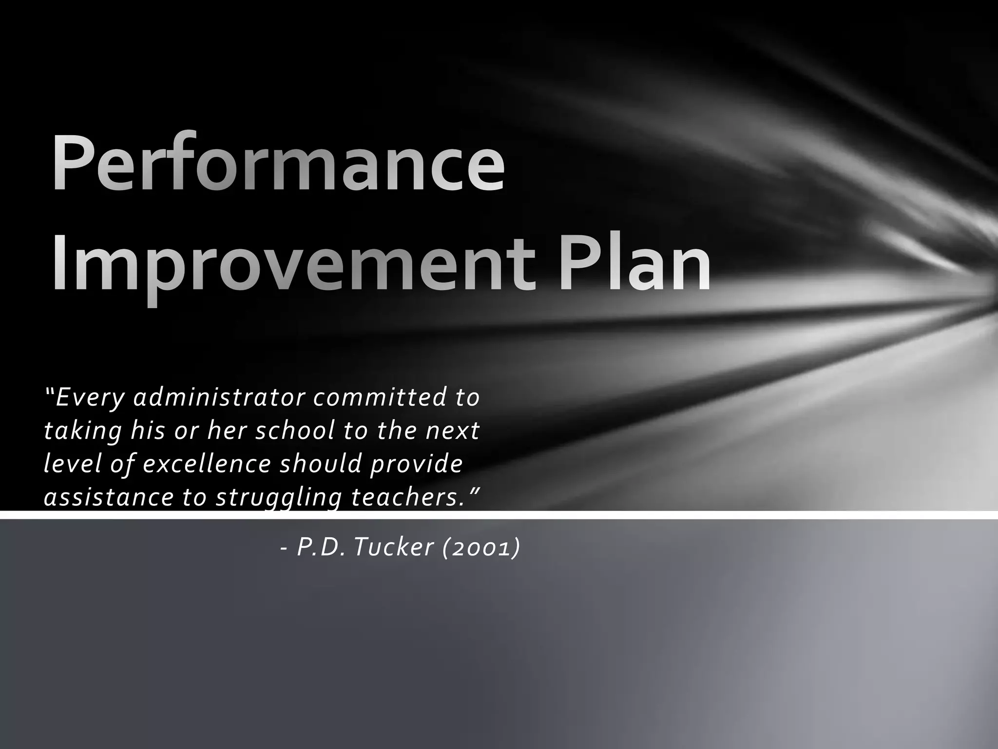 The document summarizes that P.D. Tucker stated in 2001 that every administrator committed to excellence in their school should provide assistance to struggling teachers. It then provides guidance on developing performance improvement plans for teachers, including identifying deficiencies, rating teachers, addressing performance standards and deficiencies, setting expectations for improvement, providing resources and activities, and monitoring progress through follow-ups.
